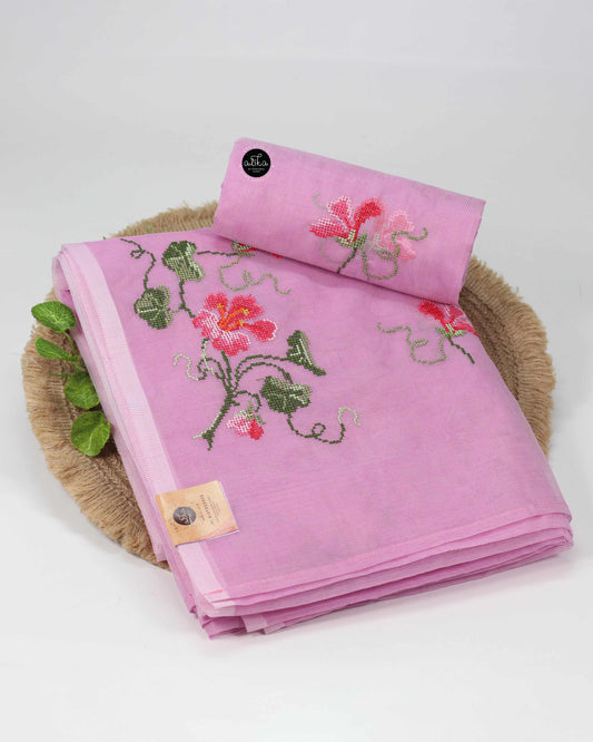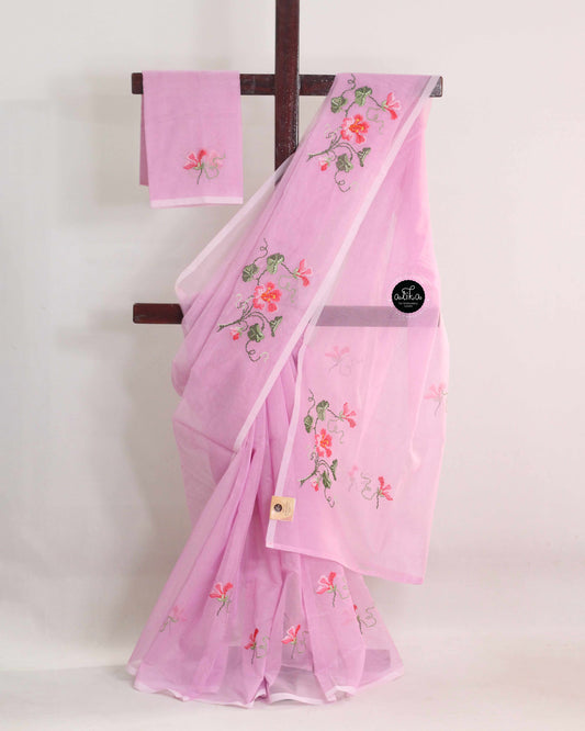 Light Pink Kota Saree with Floral Shadow Embroidery