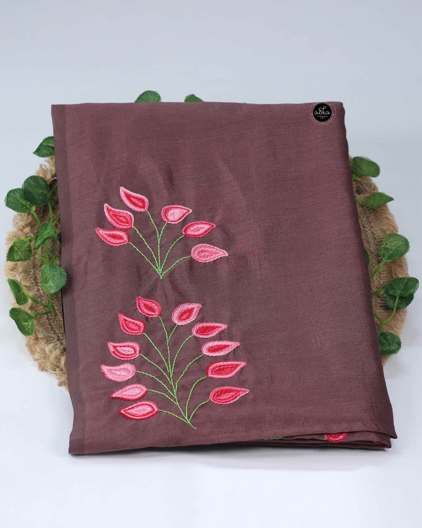 Fabric: Semi Soft Silk | Work: Floral Hand Embroidery | Color: Chocolate Brown