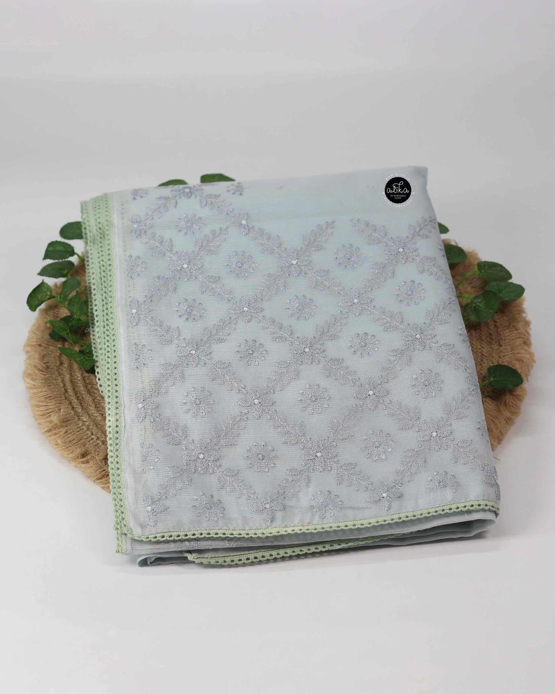 Cool Gray Kota Saree with Machine Embroidery & Mirror Work
