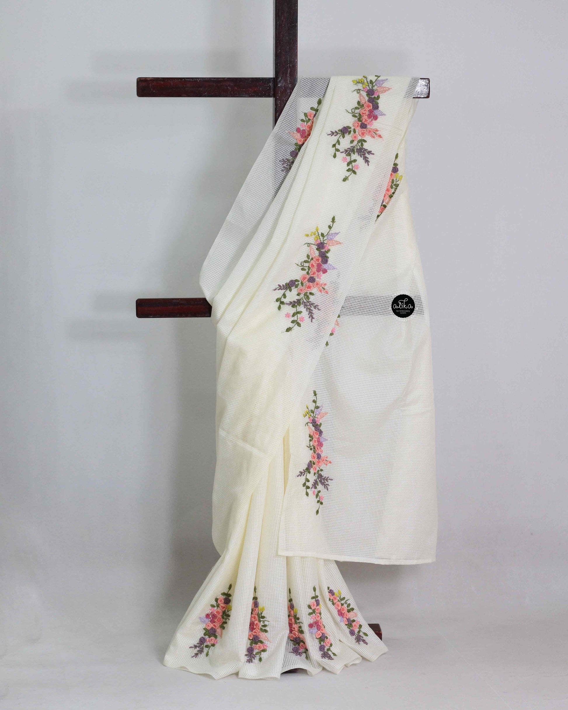 This saree is made of pure Bagalpuri silk in a soft cream shade. It features floral hand embroidery done with fine detailing. Suitable for festive wear, office functions, and gifting.