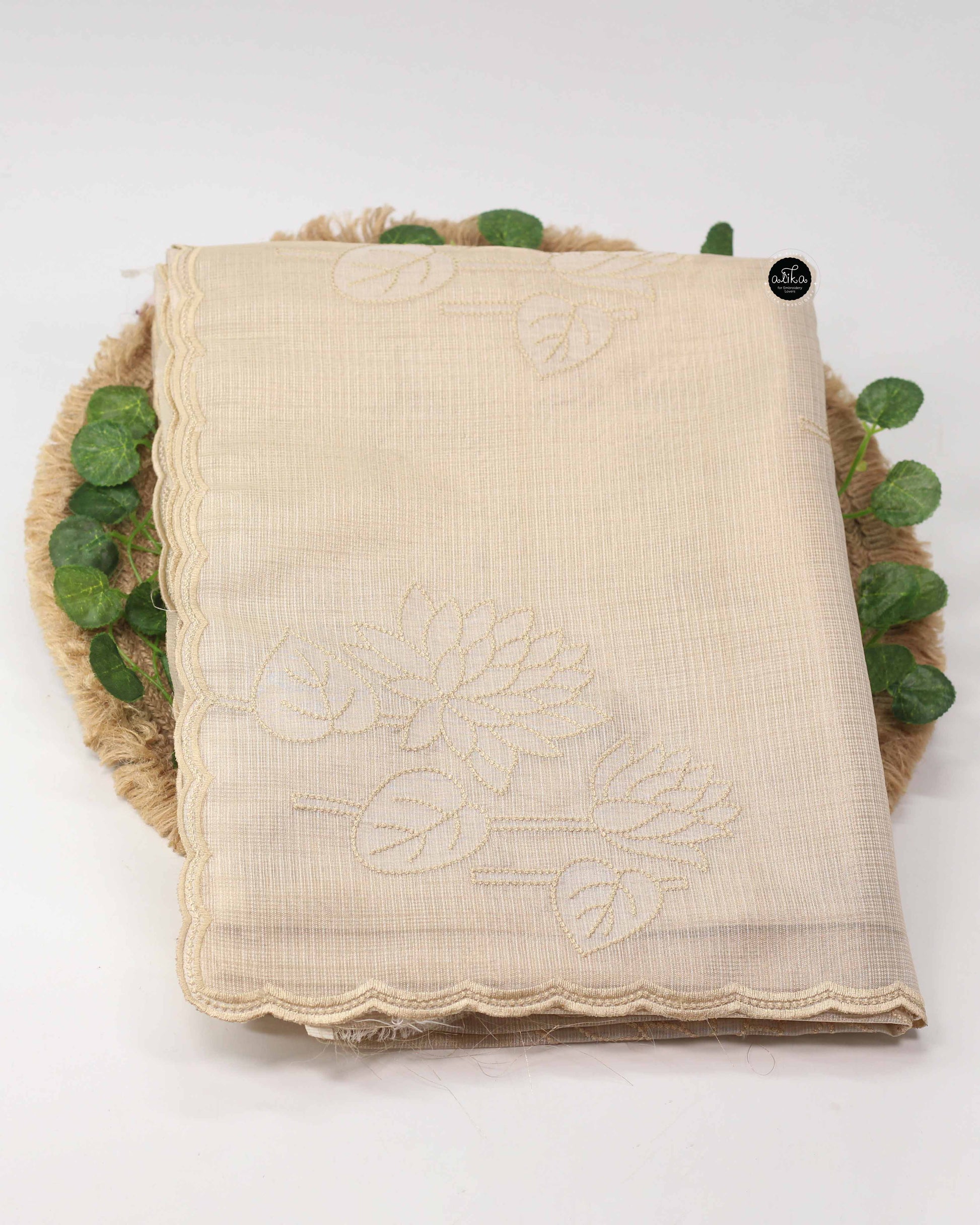 Cream Semi Tissue Saree with Appliqué Work and Printed blouse Material