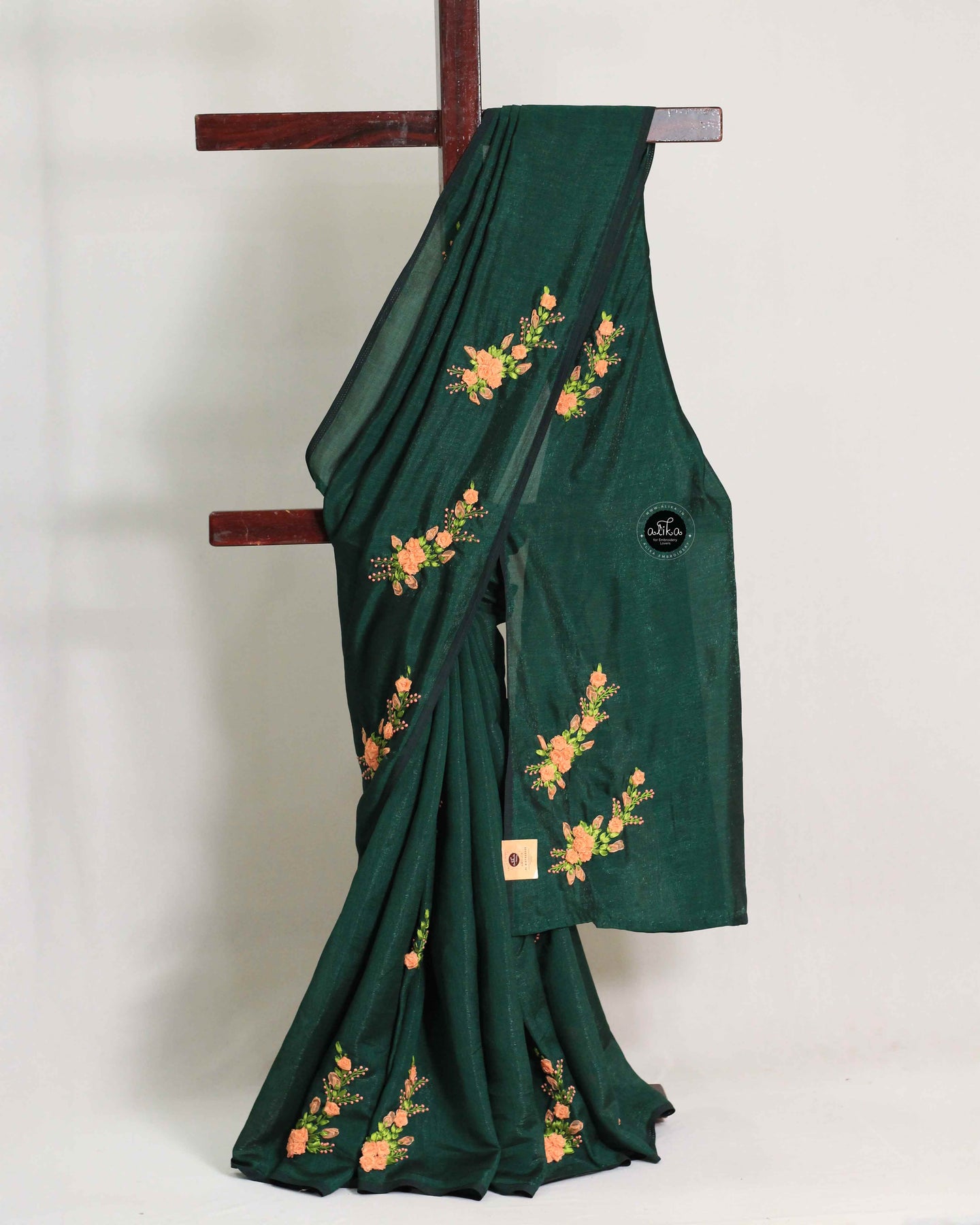 Fabric: Semi Silk | Work: Floral Ribbon Work | Color: Dark Green