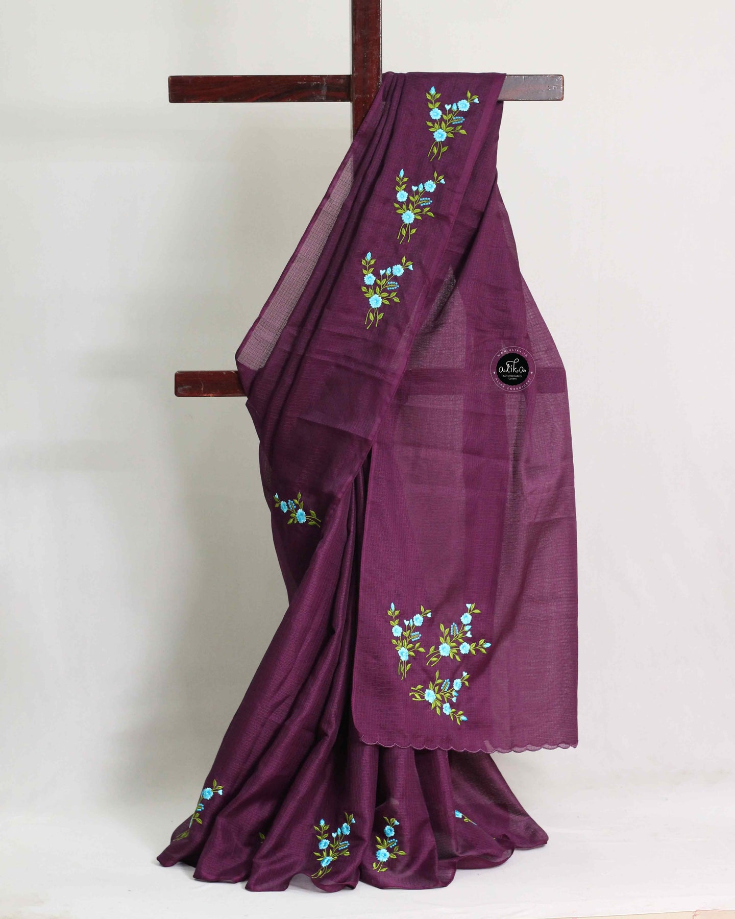 Fabric: Silky Kota | Work: Floral Machine Embroidery | Color: Dark Purple