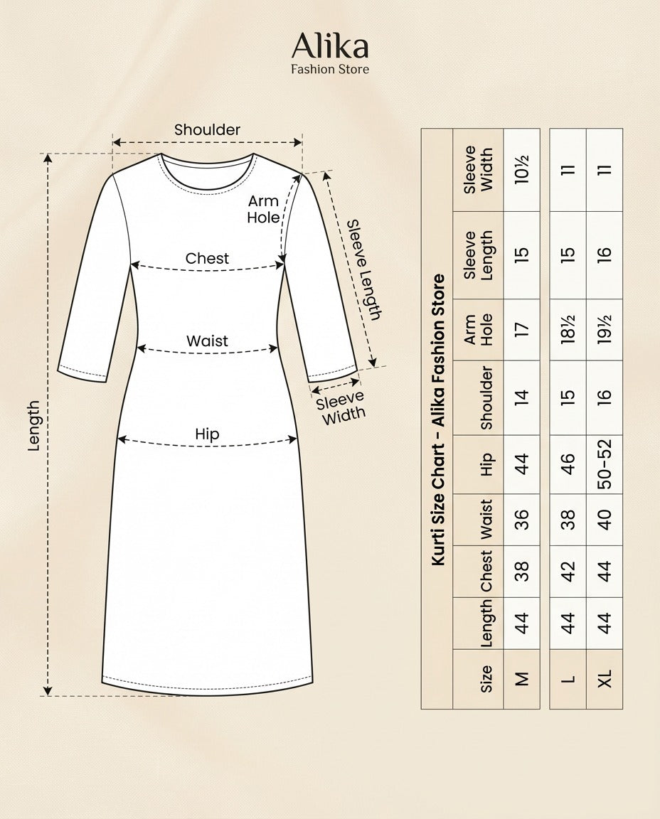 | Size | Length | Chest | Waist | Hip | Shoulder | Arm Hole | Sleeve Length | Sleeve Width |