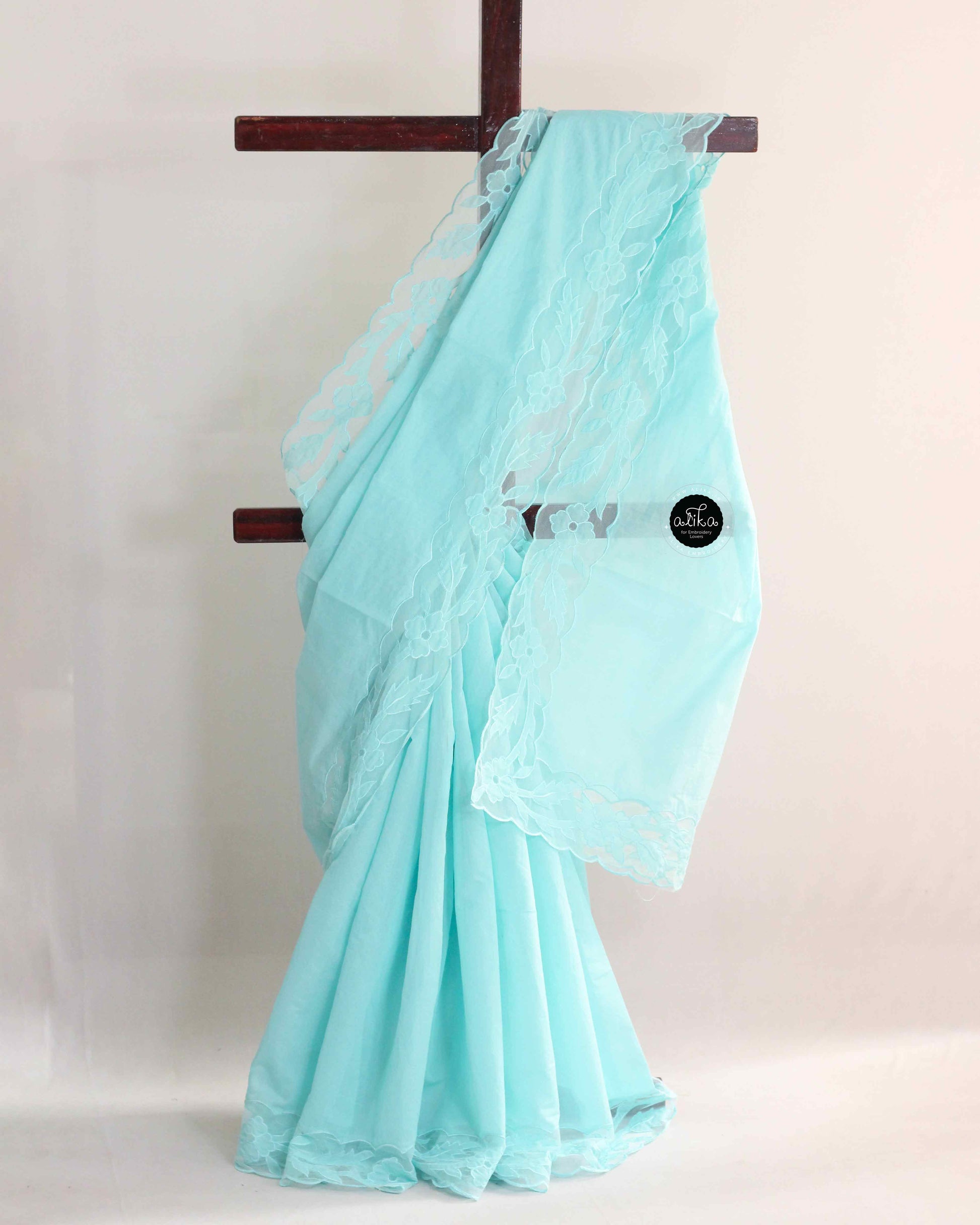 Light Blue Chanderi Saree with Appliqué Net Border – Alika Fashion Store