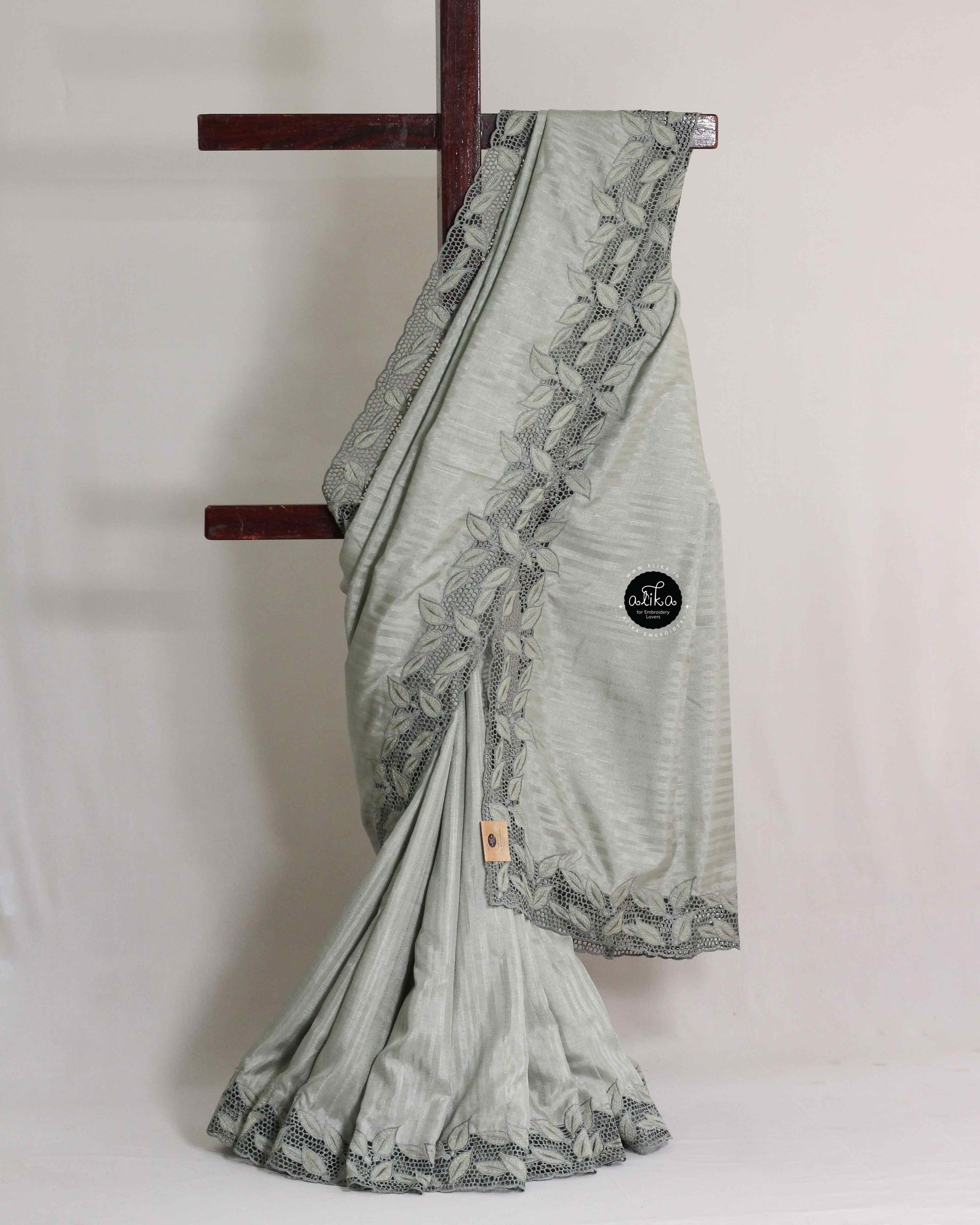 Light Grey Semi Silk Saree with Floral Full Border Cutwork