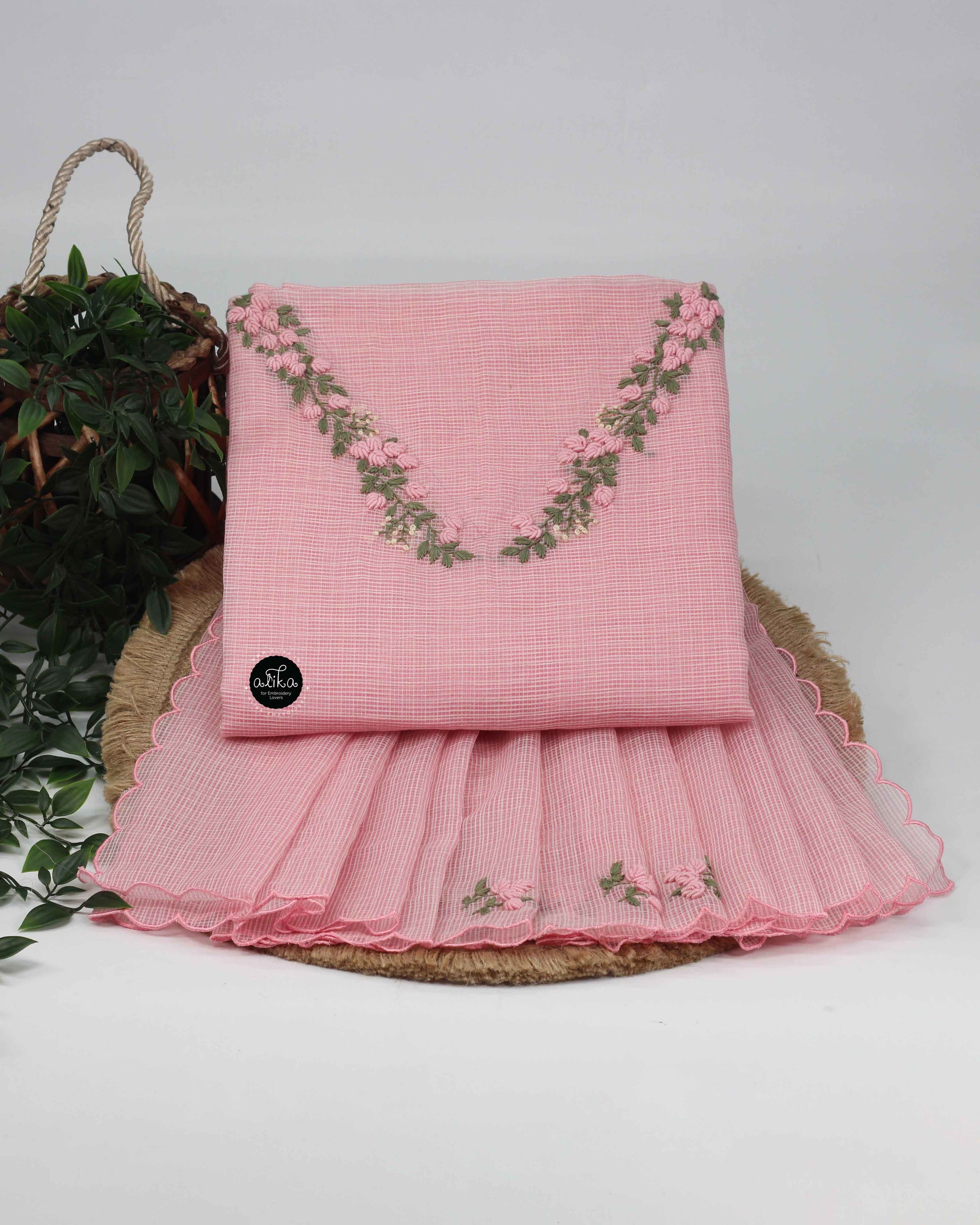 Light Pink Kota Unstitched Top & Dupatta Set with Floral Bullion Hand Embroidery – Alika Fashion Store