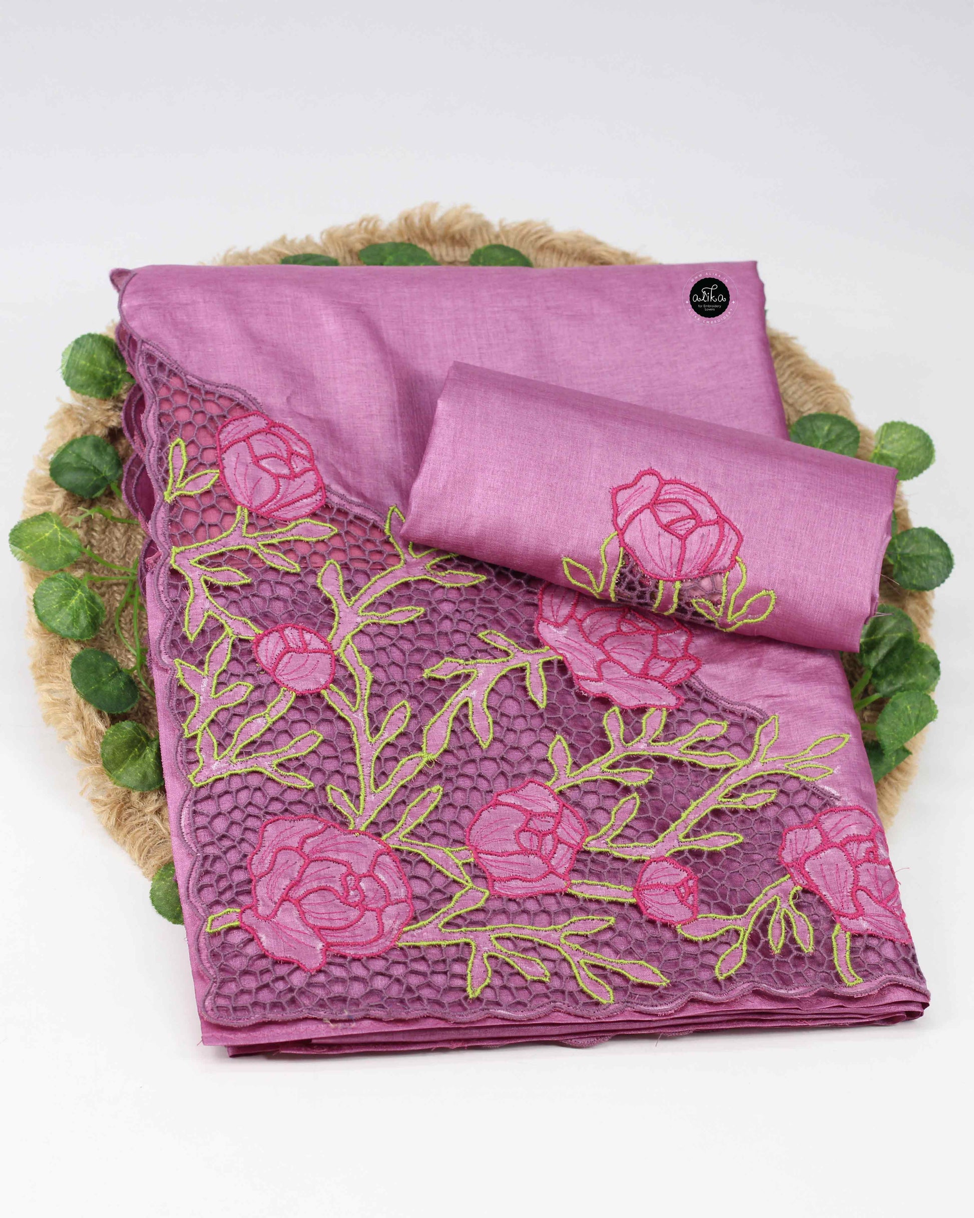 Magenta Pink Pure Tussar Silk Saree with Floral Twine Cutwork | Festive Wear