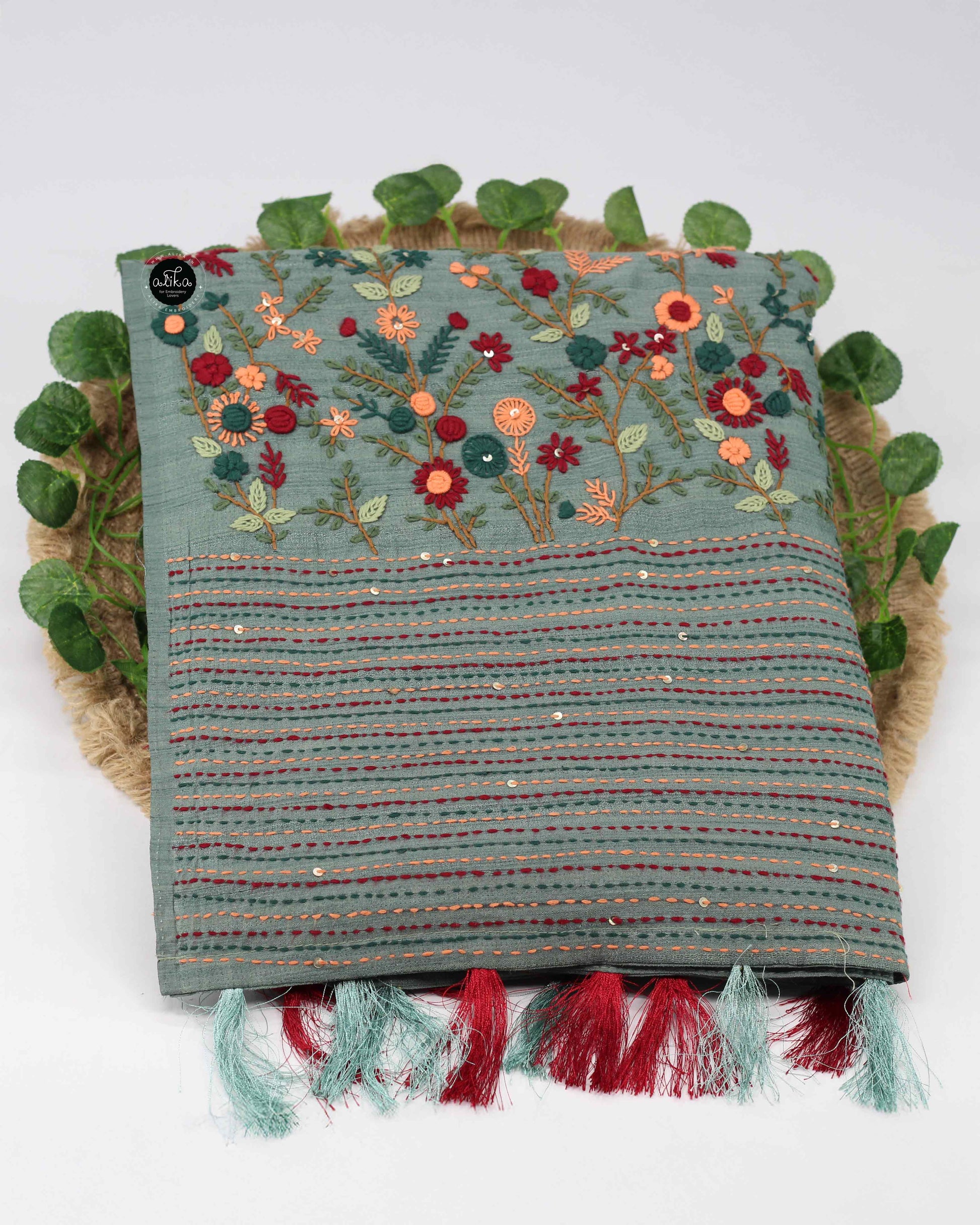 Elevate your occasion wear with the Ocean Green semi silk saree from Alika Fashion Store. Featuring floral hand embroidery and elegant sequin work, this handcrafted saree is perfect for weddings, festive celebrations, and party wear. Designed for comfort, luxury, and timeless appeal. Shop now.
