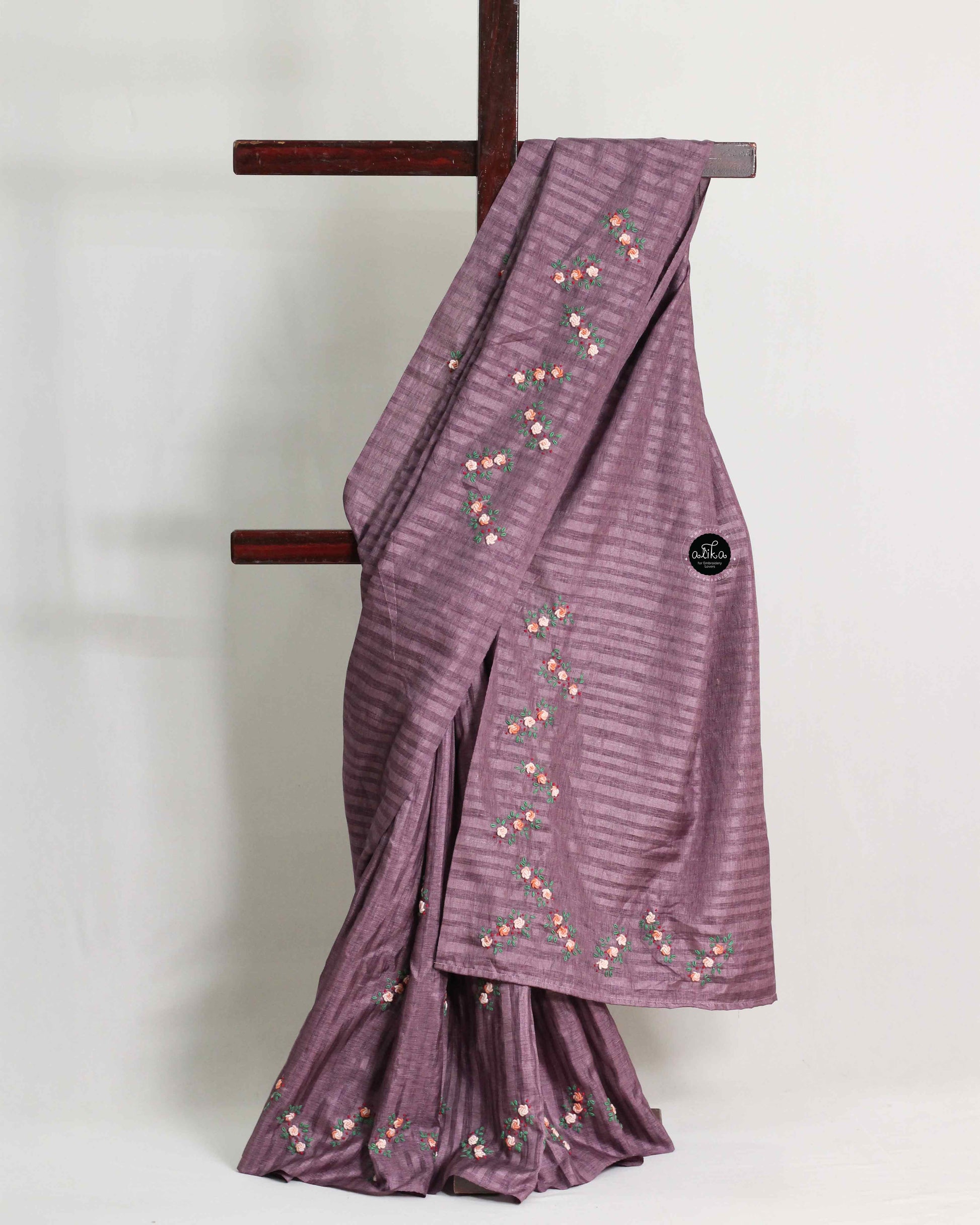 Purple Semi Silk Kota Saree with Floral Hand Embroidery – Elegant Festive Wear