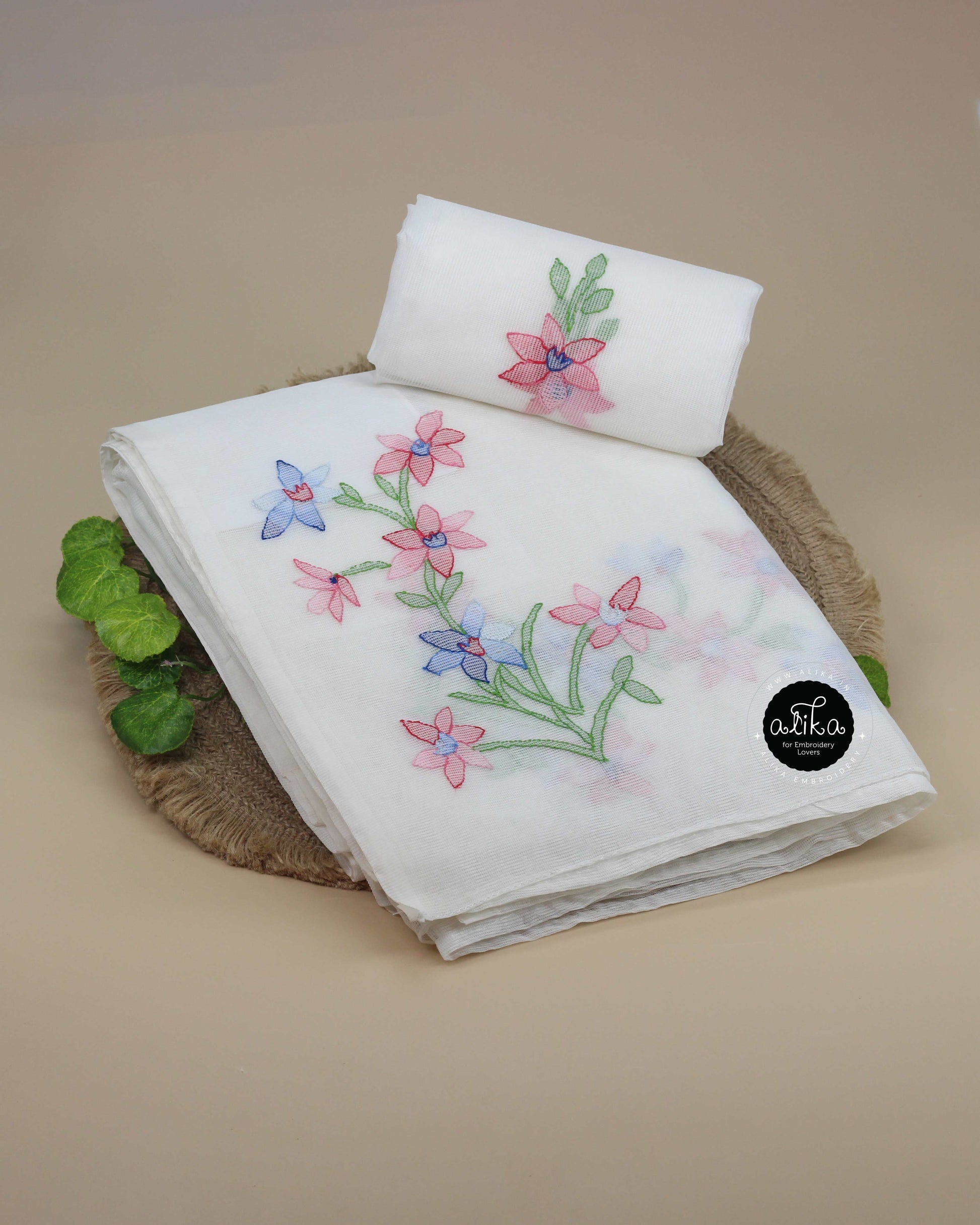 White Kota Saree with Shadow Work & Hand Embroidered Florals – Alika Fashion Store